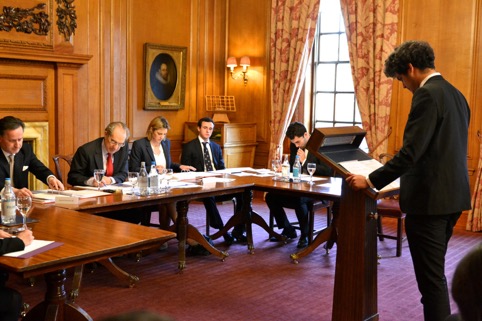 The Grand Final took place in the impressive backdrop of Parliament Chamber at the Inner Temple. Presiding over proceedings were the Rt Hon Lord Mance, Mr David Edwards QC, and Ms Rebecca Sabben-Clare QC. While the bench praised all four finalists for their skill and legal knowledge, ultimately Akash Sonecha (St Catherine’s), and Grigory Bekritsky (Magdalen) for the respondents triumphed over Julie Chan and Wei Jian Chan (both Harris Manchester College) for the appellants.