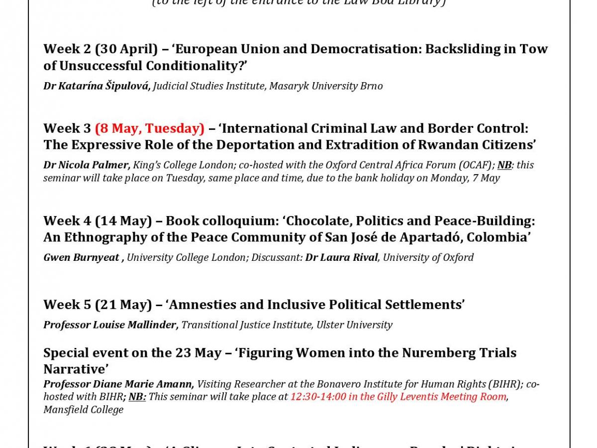 27 April 2018 OTJR term card Trinity Term 2018 Part of Centre for Criminology Oxford Transitional Justice Research Bonavero Institute of Human Rights