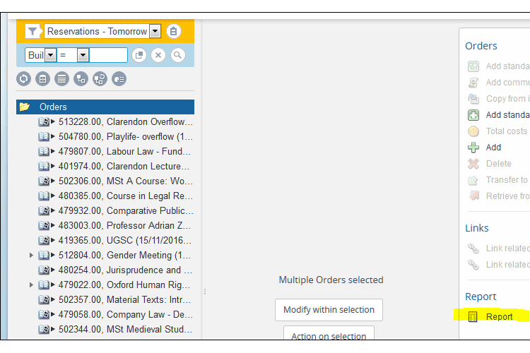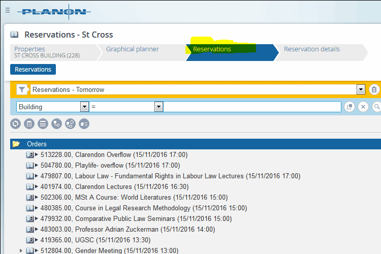 - Click the Reservations tab and set the filter to show only today's or tomorrow's bookings as required, clearing any other filters that might be set (e.g. 'Building=someplace'):