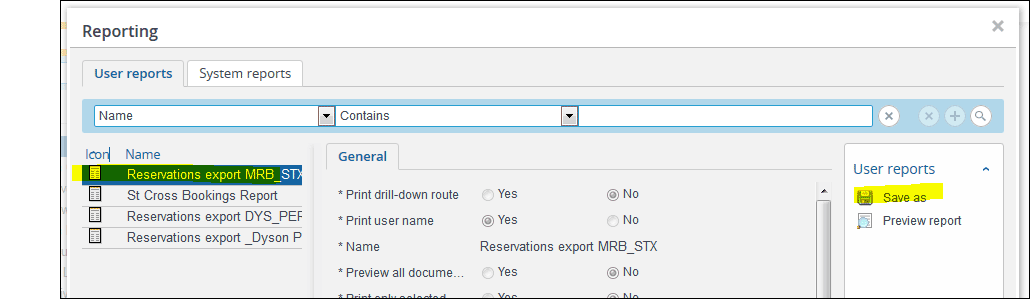 - Choose the Reservations export MRB_STX.csv report and click Save as: