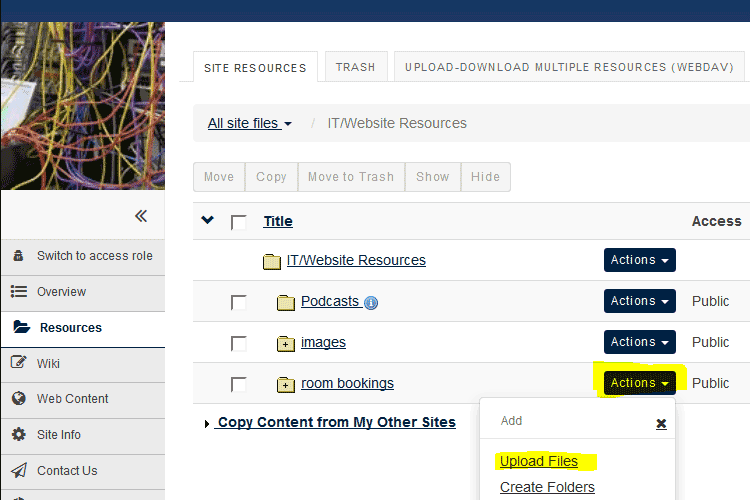 - Go to the Weblearn page Faculty of Law > Admin workgroups > IT/Website Resources